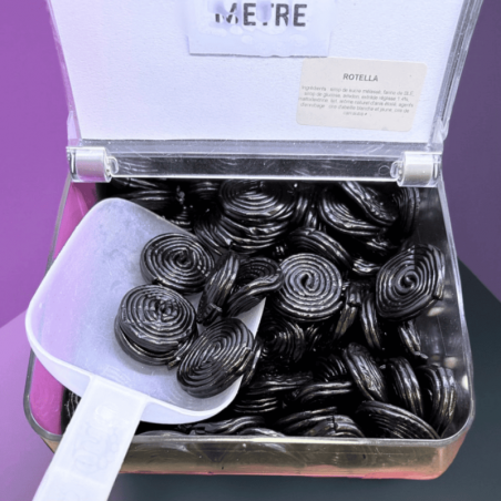 Le bonbon Rotella est un bonbon à dérouler au goût intense de réglisse.Sa forme en rouleau permet de découper la longueur souhaitée.