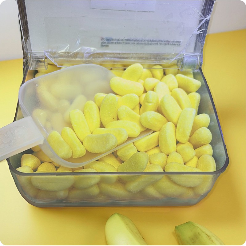 Les Bonbons Bananes sont des confiseries moelleuses au goût doux et fruité de banane.