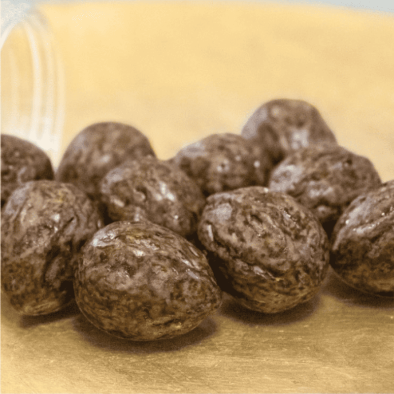 Ingrédients: sucre, praliné 27% (NOISETTES, sucre), masse de cacao, beurre de cacao, poudre de LAIT entier, beurre pâtissier (LAIT), agents d'enrobage (gomme arabique, shellac), poudre de cacao, émulsifiant: lécithine (SOJA), arômes, sirop de glucose, sel, colorant E150c.